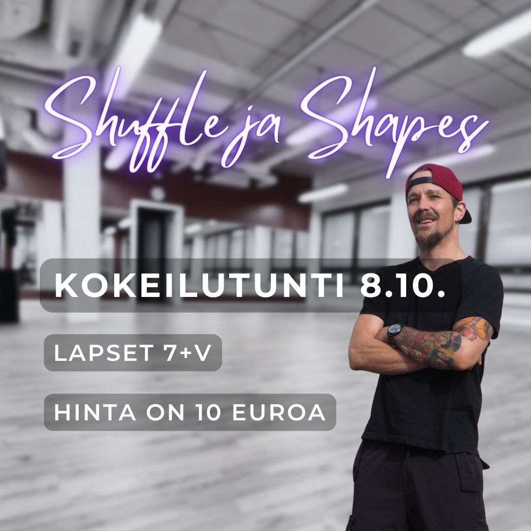Shuffle & Shapes -tunnilla opetellaan shufflen perusaskeleita, rytmiä ja liikkeiden muotoilua lapsille sopivalla, selkeällä ja innostavalla tavalla. Tunti kehittää koordinaatiota, kehonhallintaa ja rytmitajua. Tunti sopii +7-vuotiaille alkeistasoisille oppilaille, jotka haluavat tutustua shufflen maailmaan turvallisesti ja hauskan tekemisen kautta.