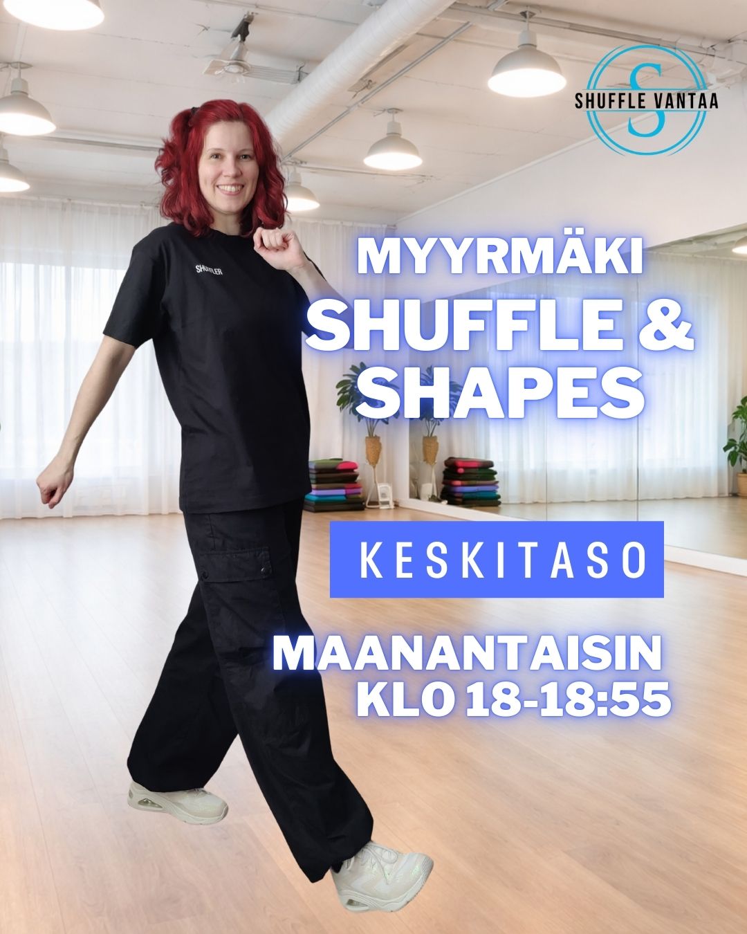 Tällä keskitason shuffle & shapes -kurssilla syvennetään shuffle-tanssin tekniikkaa sekä kehitetään liikkeen monipuolisuutta ja ilmaisua. Kurssi sopii jo hieman shufflea harrastaneille, jotka haluavat viedä taitonsa seuraavalle tasolle.